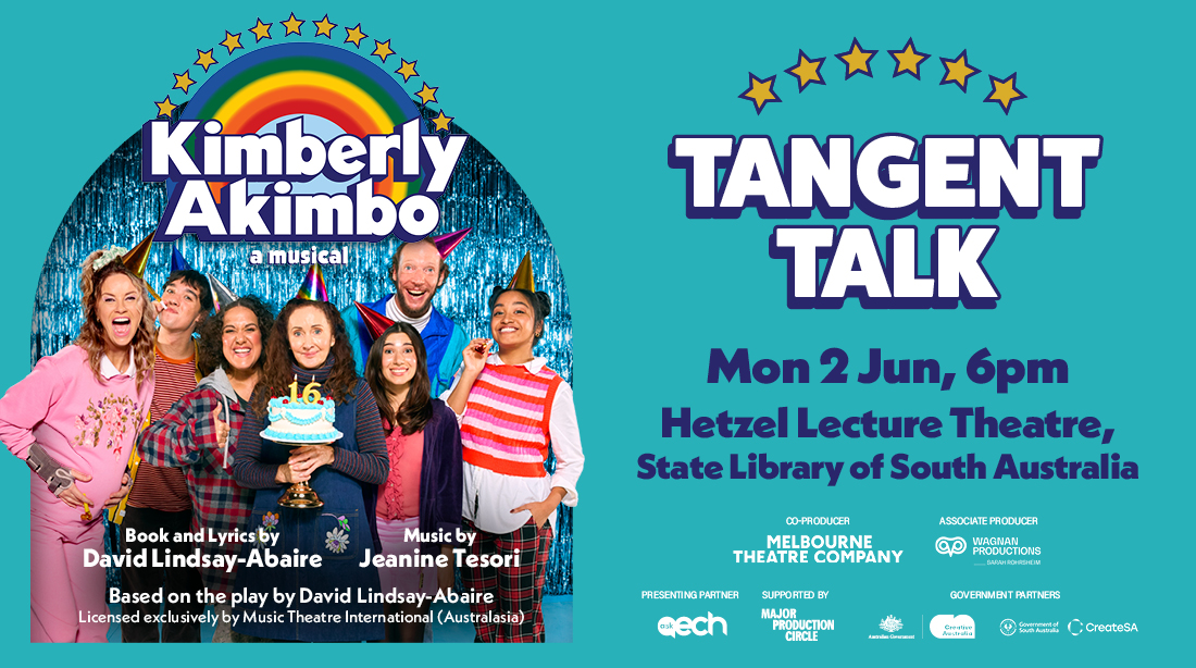 Get the story behind the story with our Tangent Talk event at the State Library of South Australia. Kimberly Akimbo is the musical that took Broadway by storm. It won countless hearts and raked in five Tony awards including Best Musical, with music by Jeanine Tesori (Shrek) and book by David Lindsay-Abaire (Ripcord). New Jersey, 1999: from a sea of teen angst, unrequited crushes and popularity contests bursts Kimberly, a musical heroine like no other. Equal parts teen comedy, heist caper and unlikely love story, her rollercoaster journey shows that the tempo of your own song is yours to set.
